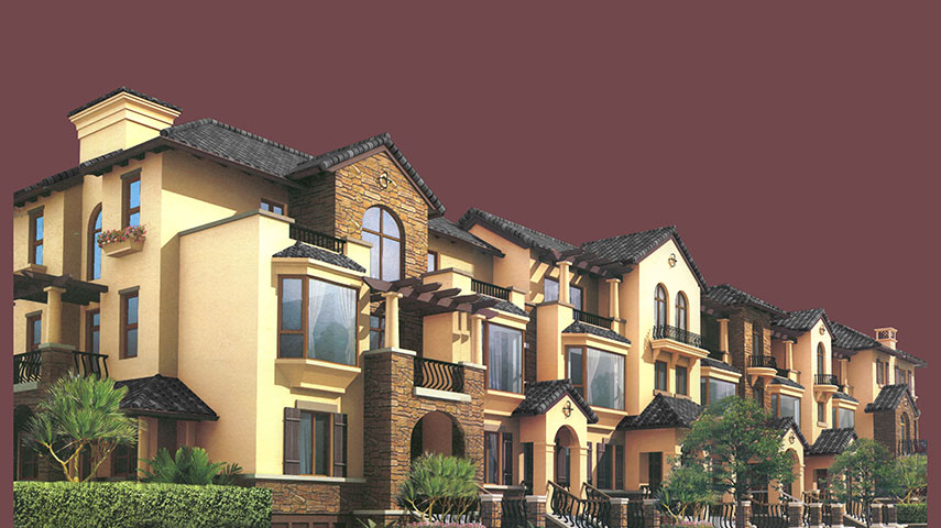 “嘉龍花園”項(xiàng)目在小區(qū)中心水景處匠心獨(dú)韻的規(guī)劃了四棟單體Villa,坐落在由水景庭院、木制小品、噴泉雕塑、鵝卵石小徑、各類(lèi)名貴植物圍合而成的自然環(huán)境之中,設(shè)計(jì)時(shí)追求更加自由舒適的空間關(guān)系,不對(duì)稱(chēng)設(shè)計(jì)、外廊設(shè)計(jì)、親水綠廊、前庭后院,強(qiáng)調(diào)自然景觀、空氣陽(yáng)光、運(yùn)動(dòng)流水。規(guī)劃設(shè)計(jì)為新古典主義(Neoclassical)建筑風(fēng)格,外觀裝飾豪華,立面為一排雙層柱廊,氣度尊貴;墻面、窗戶(hù)、窗頂、屋檐等處均有精美的雕花裝飾,盡顯豪華氣派;冬日處兩根厚實(shí)的古典圓柱所支撐的高挑門(mén)廊,啟示著主人卓爾不凡的身價(jià)和豁達(dá)寬廣的心胸。材質(zhì)和色彩選用淺灰色毛面花崗石為基座,英紅色、白色高檔外墻涂料為墻身,屋頂則是作為別墅專(zhuān)用的鐵灰色飾面瓦,整棟別墅流露出著自然而高貴的色彩。