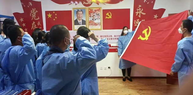 “我宣誓,我志愿加入中國共產(chǎn)黨,……”8月23日晚,鏗鏘有力的誓言在嘉龍聯(lián)合黨支部黨建室回蕩。根據(jù)上級要求和當前疫情防控形勢,我公司和三包單位及小區(qū)黨員成立臨時黨支部,黨員志愿者高舉右手莊嚴宣誓,共同為抗擊疫情構(gòu)筑“紅色堡壘”。